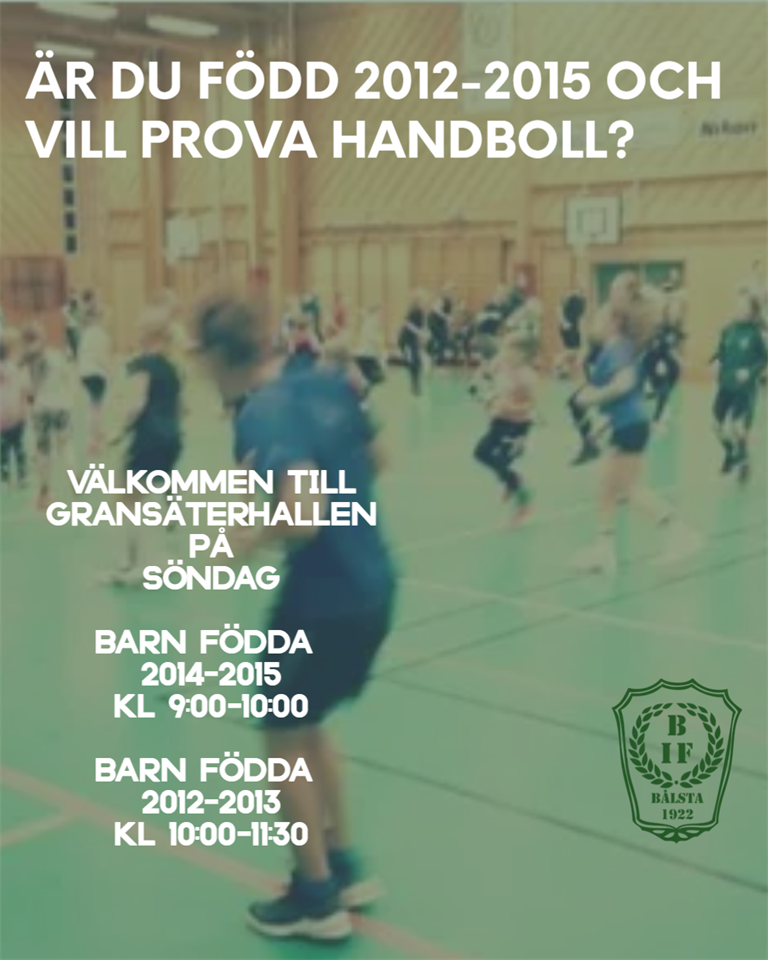 Så har du ett barn som är född 2012-2015 kom ner imorgon söndag och testa på handboll tillsammans med oss. Tillsammans spelar vi handboll, leker och övar på våra motoriska färdigheter. Viktigt för oss är att vi skattar och har en rolig stund i hallen och ledordet BRA genomsyrar våra träningsupplägg: hög Bollkontaktsgrad hög Rolighetsgrad hög Aktivitetsgrad Kom ner och prova 3 gånger gratis, ni kommer inte ångra er! Handboll är en roligt och fartfylld sport! 9:00-10:00 välkomnar vi barn födda 2014-2015 10:00-11:30 välkomnar vi barn födda 2012-2013 Allt du behöver ha med dig är gympakläder, inneskor, vattenflaska och ett glatt humör. Vi ses i hallen! Vill du ha mer info kontakta info@balstaif.se