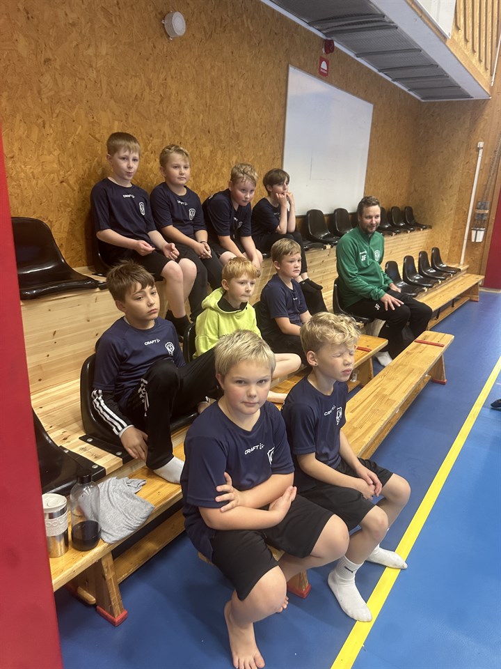 Vilken härlig dag vi haft tillsammans. Att gå från Gransäter till Västerängen tog mer tid än beräknat, så det blev ett något kortare första träningspass med fokus på fördvarsarbete. Vi har även introducerat skadeförebyggande uppvärmning, detta för att redan vid ungålder aktivera små muskelgrupper runt knän och axlar som är extra utsatta inom handboll. Hamburgare till lunch var en succé och alla blev helt klart mätta. För att ladda energi stod tvn på med en gammal VM-match som Sverige spelade. Andra passet fokuserade vi på samarbete, ta sig över planen med hjälp av 2 mattor. I handboll är det viktigt att kommunicera, samarbeta och ha förståelse för varandra. Vi spelade även "mattmatch" med avbrott för att justera spelet. Vi ledare ser att mängdträning av matchliknande spel ger resultat i fler passningar, mer rörelse och ökad kommunikation mellan varandra. Vid avslutning samlades vi och pratade om vikten av att lyssna på alla i laget, att lyfta och peppa varandra. Det ska vara glädjefyllt och kul med handboll - och vi tillsammans skapar de förutsättningarna för varandra. Var stolta över era barn, dem har alla varit helt exemplariska idag och visat varandra respekt, varit trevliga, gett pepp och varit tillsammans och inbjudande hela dagen! Ladda batterierna med god mat och sömn så ses vi utvilade och mätta imorgon bitti. Hjälp barnen att få förutsättningar att lyckas! Fler bilder från dagen finns i en mapp "Träningsläger 2025" under bilder. Hälsningar Ledarna, Kim, Jocke, Jocke & Sara.