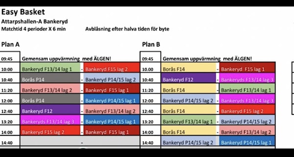 På lördag är det dags för säsongens sista Easy Basket cup. Vi har 2 lag. Se bifogat spelschema. Vi spelar i A-hallen, där det kommer vara 2 planer (plan A och B).