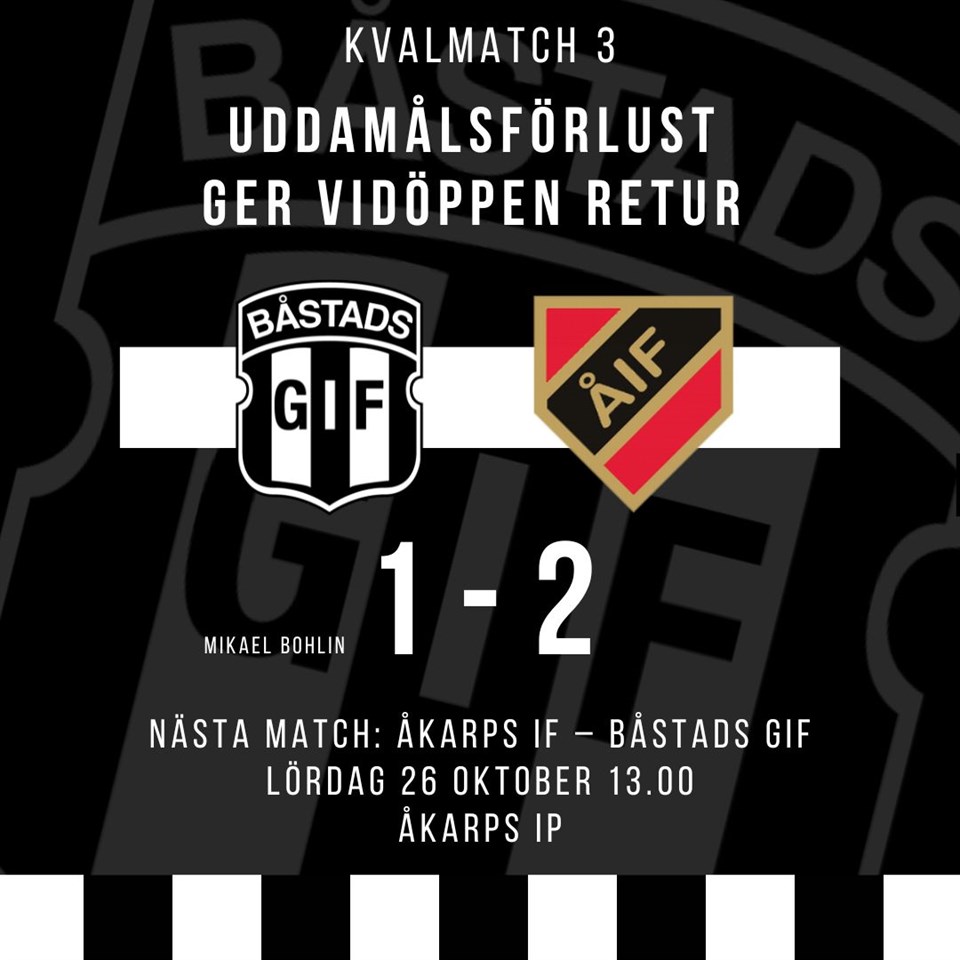 Så var det dags för säsongens sista hemmamatch då det var första matchen i andra- och sista kvalomgången till division 4. För motståndet i andra kvalomgången, som avgörs i dubbelmöte, står Åkarps IF från den sydvästra division 4 serien. Första matchen i dubbelmötet spelades på Örebäcksvallen och slutade med förlust 1-2 (0-0) vilket gör att vi på lördag åker ner till Åkarp med ett uddamålsunderläge.