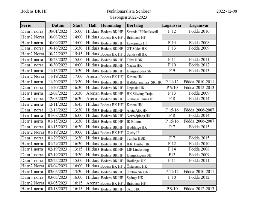 Nu finns ett uppdaterat schema för lagansvar/matchvärdar för resten av säsogen! Finns på hemsidan under dokument/Instruktioner & arbetsscheman
