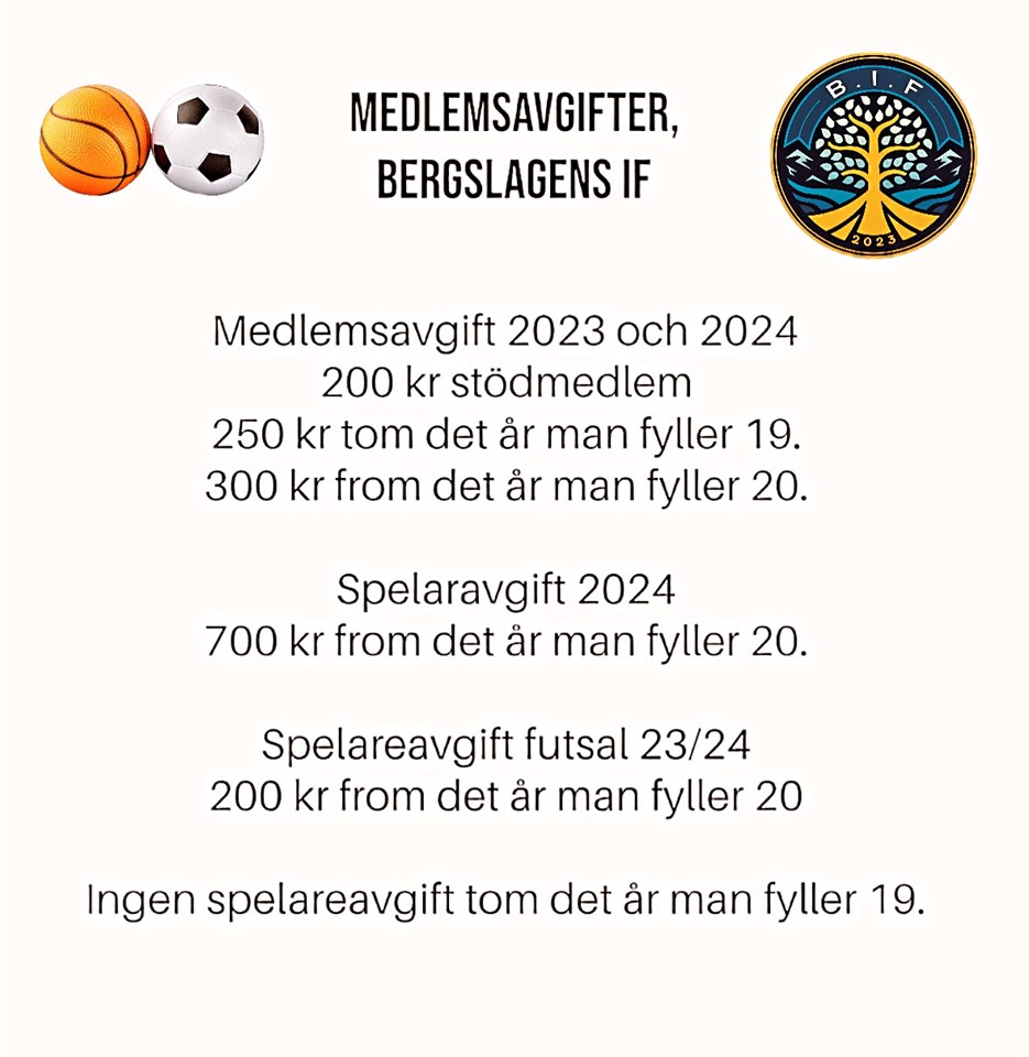 • Medlemsavgifter Bergslagens IF 2023/2024