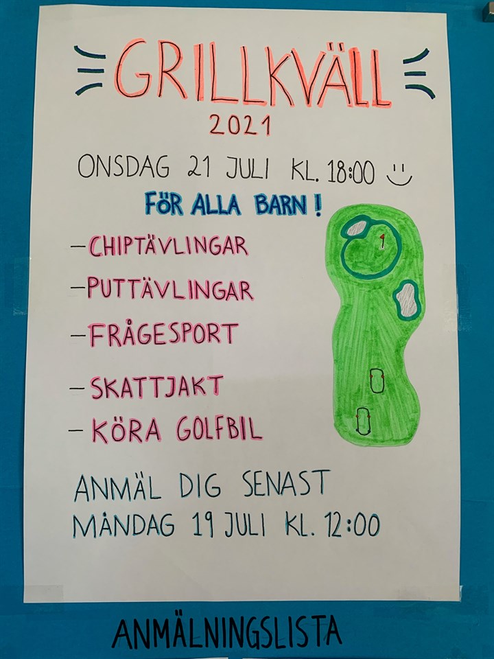 Hej, Den 21/7 är det grillkväll för alla barn. Anmälningslista finns i klubbhuset Vi kommer under kvällen behöva lite hjälp av föräldrar med div aktiviteter. Känner du att du kan tänka dig hjälpa till så maila : ungdom@bodensgk.se