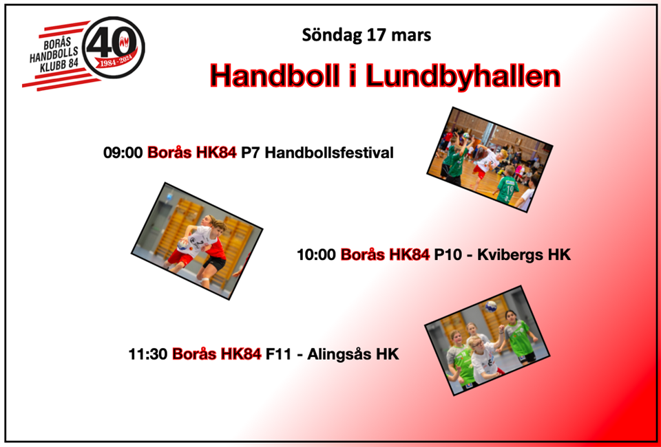 • Handboll i Lundbyhallen söndag 10 mars