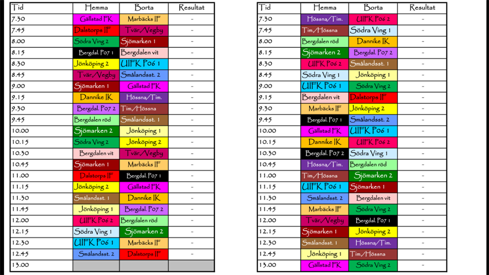 Bifogar spelordning. Lagen imorgon: Lag RÖD Axel F Harald Elias Joel Melvin Albin Hannes Lag VIT Erik Gabriel Leo Olle Felix Axel G Ivar