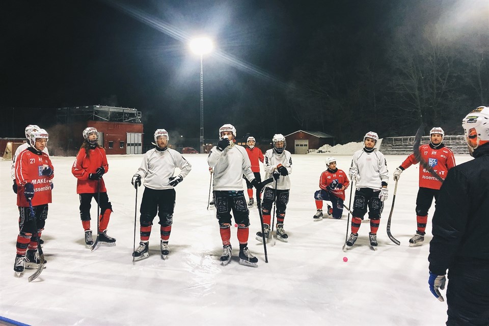 Idag samlades seniortruppen för första gången på Bodavallen! Träningspasset inleddes med en genomgång av senioransvarige Bobby Manasiev som meddelade att huvudtränare Nikolai Borovikov kliver av sin roll som huvudtränare av personliga skäl. Istället tar Niklas Wennström och Stefan Rosberg över, som tidigare varit en del av tränarteamet tillsammans med Nikolai. I ledarstaben tillkommer också Johan Borehed som ett stöd för Niklas och Stefan. Johan kommer också vara en del av spelartruppen och agerar således spelande tränare. Exakta roller för tränarteamet återkommer vi med, då de i skrivande stund inte är helt spikade. Niklas hade ett kortare teoripass för att dra upp riktlinjerna för hur vi ska agera som lag, och detta efterföljdes av ett kortare teoripass inför bortamatchen mot Kungälvs SK på söndag. Efter teori och information var det äntligen dags att skrinna ut på Bodavallens is. Vi fick ett härligt pass i benen inför söndag och nu är vi bara sugna på mer, samt lättade att äntligen få tillgång till vår fasta punkt på Bodavallen. Härligt att vara igång! Foto: Tomas Wennström