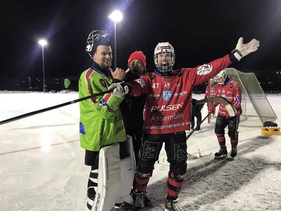 Äntligen premiär utan att fått träna på stor is. Trots att egentligen ALLA förutsättningar var emot oss så lyckades vi ta säsongens första seger i seriepremiären borta mot starka och alltid så kompetenta LAIK-U i division 1 Södra. Premiären mot Sunvära SK blev uppskjuten och spelas 15/12 pga isproblem på Sjöaremossen förra söndagen. Första 25 minuterna var stirriga och vi blev rejält tillbakapressade. Efter ca 30 minuter börjar vi kunna hålla i och vårda bollen på ett lugnare och tryggare sätt vilket gör att vi då även kan få till ett bra anfallsspel. När första halvlek är över ligger vi under med 2-1 och de siffrorna skall vi tacka vår målvakt Hampus Wennström för som gjorde ett flertal viktiga räddningar. LAIK tog relativt snabbt ledningen med 2-0 som vår kapten Daniel Jönsson reducerade på hörna till 2-1 när dryga kvarten återstod till halvtidsvilan. Vår tränare och laget snackar ihop sig och andra halvlek kan börja. Efter ca 8 minuter utökar LAIK sin ledning till 3-1 genom en fin prestation av Dennis Hallgren. Men bara ett par minuter senare får vi straffslag som Aleksandr Shtele förvaltar och vi har häng igen 3-2. Ytterligare flera målvaktsräddningar av Hampus Wennström och en som verligen stack ut, med ett snabbt målvaktsutkast till vår Nikita Veshchagin som skjuter 3-3! Så fint och vi jublar för fulla muggar. Men som ofta händer slappnar laget som precis nätat av lite så LAIK tackar och tar emot, 4-3 genom Robin Sandgren, skit och pannkaka. Tränare Niklas tar Timeout, vi pratar ihop oss och fem minuter senare har vi kvitterat igen, 4-4 genom Nikita Veshchagin, assist Joel Bergqvist. Vi trycker på och skapar hörnor och även LAIK hotar oss. Så händer det fantastiska att vi i den 83:e minuten tar ledningen för första gången i matchen, men inte den sista. 4-5 är ett faktum efter mål av Aleksandr Shtele assisterad av Grigoriy "Grisha" Yugasov. Underbart och vi jublar i högan sky! Timeout LAIK direkt vid vårt 4-5 mål och efter den öser LAIK på med flertalet kvalificerade räddningar av vår fina målvakt Hampus som följd. VIlken match Hampus, matchens och Borås Bandys lirare helt klart! I den 94:e minuten blåser det duktiga domarteamet Ulf Salomonsson av matchen och två poäng på kontot samt revansch från 13-1 förra årets premiär som nykomling då är ett faktum! Galet och helt underbart. Tränare Niklas med hela laget bakom sig ger: 3 Knallar till vår målvakt Hampus Wennström 2 Knallar till Nikita Veshchagin 1 STOR Knalle till hela laget för en jättefin insats i moral, mod att vilja vinna och kämpaglöd utan dess like trots obefintliga ispass på stor plan. Laget som gjorde det var idag: #22, Hampus Wennström, MV # 3, Filip Brådalen(Jr) - ord nr 15 # 5, Rune Younan # 6, Anton Lindberg(Jr) # 8, Nikita Veshchagin #10, Grisha Yugasov #11, Samuel Kjellqvist - ord nr 14 #33, Emil Edberg #47, Henrik Silfverstolpe #59, Patrik Schelin #66, Daniel Jönsson(K) #76, Joel Bergqvist #77, Aleksandr Shtele #95, Philip Karlsson #97, Joakim Rosén Huvudtränare: Niklas Wennström Lagledare: Magnus Chröisty Ledare: Tomas Wennström