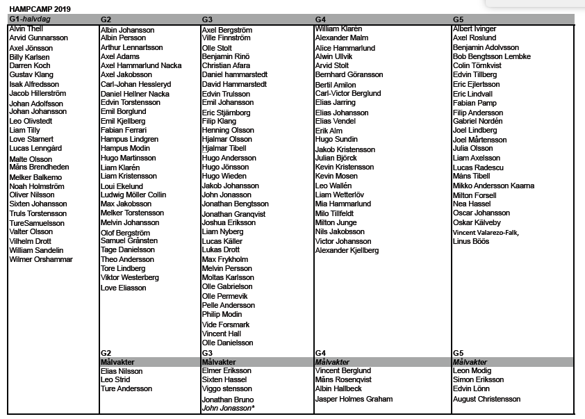 Snart är det dags. Den 4 augusti sätter vi igång #HampCamp 2019. Idag har vi mailat ut schema och gruppindelning till er. Vid frågor eller funderingar går det fint att kontakta Anna Berglund på 0734-336832 Bästa hälsningar Hampus Lindholm och campteamet