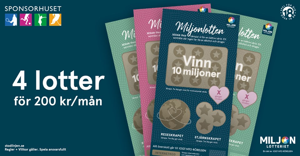 Fantastiskt erbjudande för alla i och runt Clemensnäs IF! Du har nu möjlighet att köpa 4 st skraplotter från Miljonlotteriet och ha chans att vinna miljoner. Det fantastiska är att du betalar 200 kr för dessa fyra lotter och hela summan tillfaller Clemensnäs IF. Vi hoppas nu att alla testar på detta fantastiska erbjudande. Väljer du sedan att fortsätta prenumerationen så går 25 kr till Clemensnäs IF varje ny månad. OBS! Man kan endast köpa lotterna en gång per person. Köp lotter och stöd samtidigt CIF Clemensnäs IF 19 maj 2021 0kommentarer