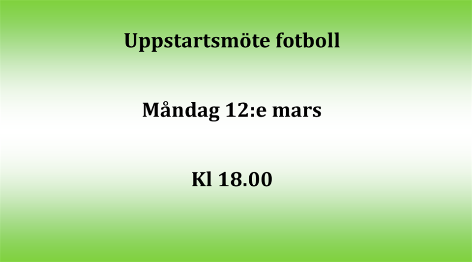 Måndag den 12:e mars kl. 18:00 på kansliet är det uppstartsmöte för fotbollen. Viktigt att minst en person från varje lag är närvarande. Det gäller alla barn- och ungdomslag from 2010 och uppåt. Under mötet kommer vi att fördela träningstider för sommaren, gå igenom vilken division ni vill anmäla till samt ge lite info om träningskläder och material. Inskrivning för de yngsta; pojkar och flickor födda 2011 kommer att ske den 17:e april. Clemensnäs IF 7 mar 2018 0kommentarer