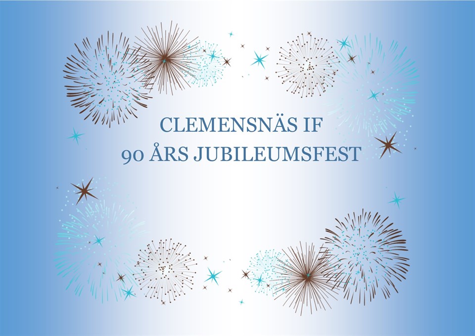 Den 17:e oktober kl 18.00 hålls Clemensnäs IFs 90 års jubileum. Under kvällen blir det trerätters middag, underhållning, tal, utdelning av utmärkelser med mera. Underhållningen står bandet The Buddies för. Mer information om detta samt inbjudningar skickas ut några veckor innan utsatt datum, men boka redan nu in den 17:e oktober i din kalender.