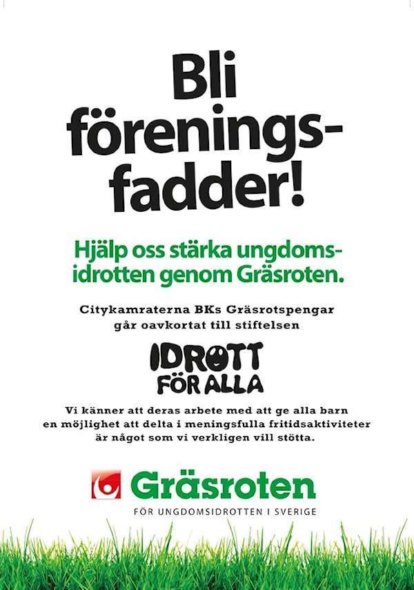 Så anslut ert spelkonto hos Svenska Spel till Citykamraterna BK så kommer du stötta Idrott För Alla genom denna enkla handling! Våra Gräsrotspengar går oavkortat till stiftelsen!