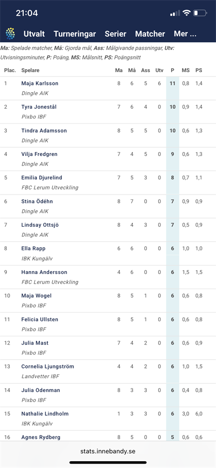 | 10. | (12) | Mariestad BoIS Hockey Ungdom U20 |