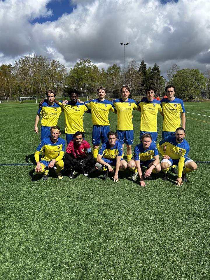 Andra raken segern togs igår hemma på Krokslättsvallen. Satt långt inne men vi rider ut de problem som skapas och det räckte för 3 friska poäng, gott så! Första halvleken är relativt bra tycker jag. Vi har god kontroll och skapar många lägen. En boll i stolpen, något offsidemål och en ytterligare i stolpen (alternativt hjulet?). Vi gör 1-0 efter dryga 20 minuter efter en fin längre boll av Simon som Hannes suger upp och skickar in i nät på ett behärskat sätt. Pushers lyckas dock kvittera efter ett slarvigt bolltapp av oss. Men bara någon minut senare tar vi åter ledningen genom Hannes efter vackert förarbete av både Bita och Peter. 2-1 i paus och vi leder rättvist. Andra halvleken går inte riktigt vår väg, Pushers sätter oss under tryck och vi har väldigt svårt att hitta vårt spel. Ändå är det vi som lyckas dryga ut vår ledning till 3-1, återigen genom Hannes som fullbordar sitt hattrick. Här borde matchen vara död, men icke! Pushers ger sig inte och vi har väldigt svårt att på ett kontrollerat sätt förvalta vår 3-1 ledning. Således lyckas bortalaget reducera med dryga kvarten kvar till 3-2 och vi har svettiga sista minuter kvar. Vårt spel blir mer och mer kaosartat och Pushers får energi av det. Vi lyckas dock hålla undan och springer istället in 4-2 på en omställning med minuten kvar signerat Hannes återigen! Spik i kistan som man säger och domaren blåser av. Andra halvlek var ej vacker, men det räckte igår. Målskytt: Hannes Simonsson x4 Matchens lirare: Fruktansvärt svårt att säga någon annan än Hannes efter att man gjort hela fyra mål och klivit upp i skytteligaledning. Men som enfaldig domare och mandat att ge utmärkelsen till vem jag vill får det denna gång delas. Fabian Baniameri tar en för laget och vaktar kassen när det krisar. Något han gjorde med bravur! Tack för den Fabian! Och tack för fyra mål Hannes