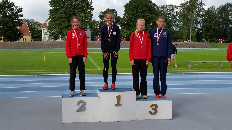 Dals Södra FFI deltog i helgen i årets Skarakamp med två deltagare, Amanda Behrendtz och Johanna Hallsten, båda i F12. Amanda deltog i grenarna kula och tresteg och Johanna i 60 meter, höjd och 200 meter. Amanda satte nytt klubbrekord i tresteg för F12 med sina 6,37. Amanda gick även vidare i kula och slutade på en sjunde plats med en stöt på 6,87 meter. Johanna knep en delad tredje plats i 200 meter i hård konkurrens med nytt klubbrekord på tiden 30.0 sekunder, pers med nästan 1.5 s. Det 37 år gamla klubbrekordet hade Kajsa Gustafsson (född -66) på 31.0 s satt i Skövde 27/7-1978. Grattis till bra prestationer! Bilden visar prispallen med medaljörerna på F12 200 m: guld, Lovisa Pettersson, Lidköpings IS, silver, Siobhan Cronin Istrum SK, brons, Johanna Hallsten Dals Södra FFI och Tyra Emardson IK Ymer.