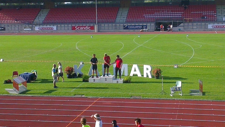 Tim Söderqvist deltog i senior-SM som i år gick på Hällåsen i Söderhamn 7-9 augusti. I tuff konkurrens med 12 tävlande klarade sig Tim vidare till finalomgången och slutade 7:a med 59,95. Två veckor senare på junior-SM på Fredriksskans IP i Kalmar tog 20-årige Tim bronset i M22-klassen med resultatet 60,14. Grattis till fina resultat! Bilden visar prispallen på JSM.