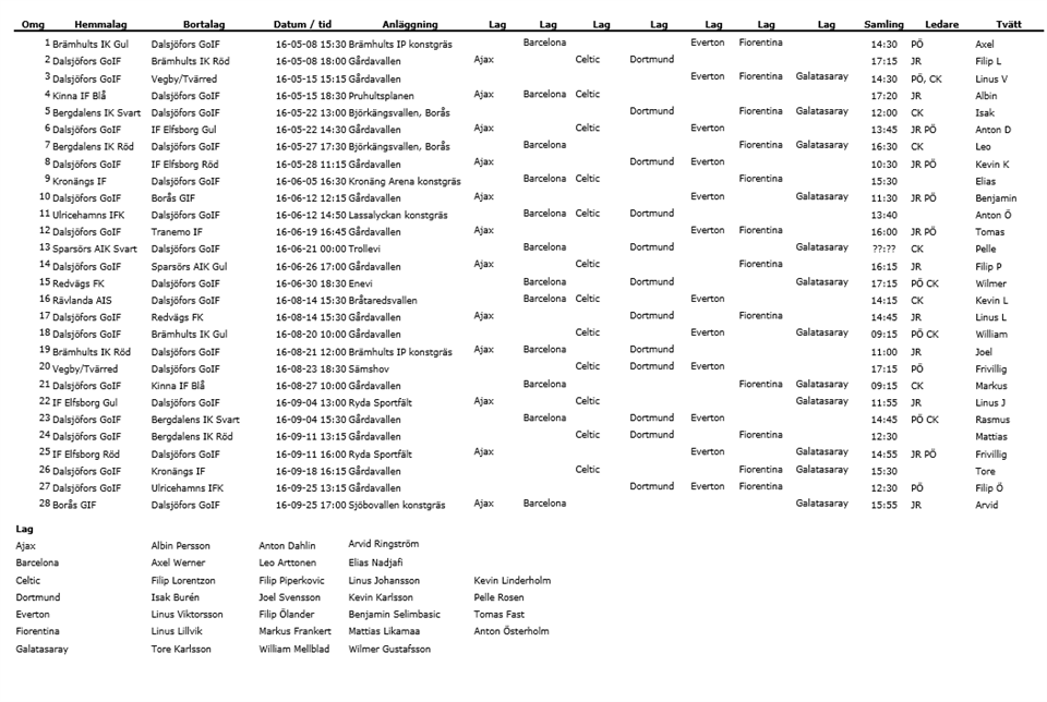 Nu är schemat nästan klart det är bara en match mot Sparsör som det saknas tid för. Juniorlag Herrar 2 maj 2016 2kommentarer