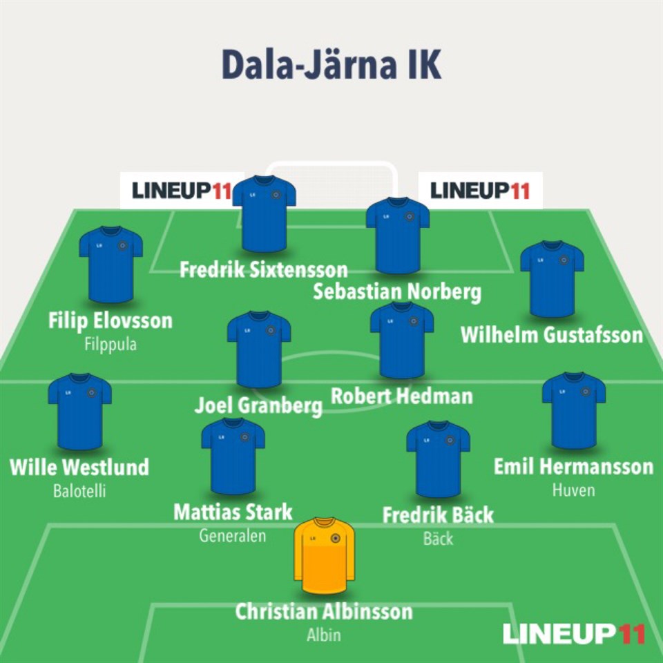 Avbytare: Sebastian Norberg, Fredrik Nises, Oskar Danielson Frost, Abdi och Emil Stolpe Matchstart klockan 19:00 på Dala-Järna IP