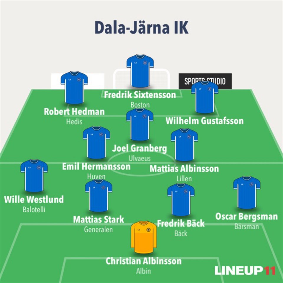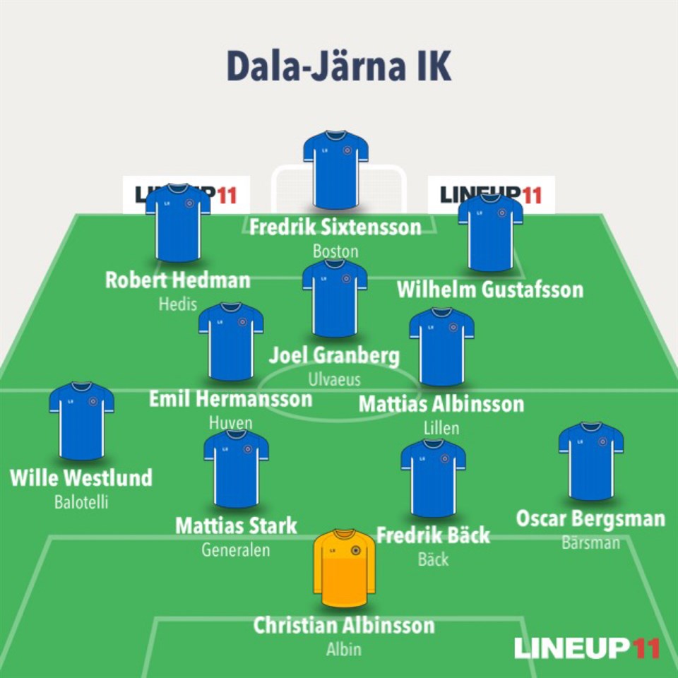 Avbytare: Oscar Bergsman, Oskar Danielsson Frost, Emil Stolpe, Mattias Albinsson och Abdi. Välkomna till Dala-Järna Idrottsplats klockan 15:00!