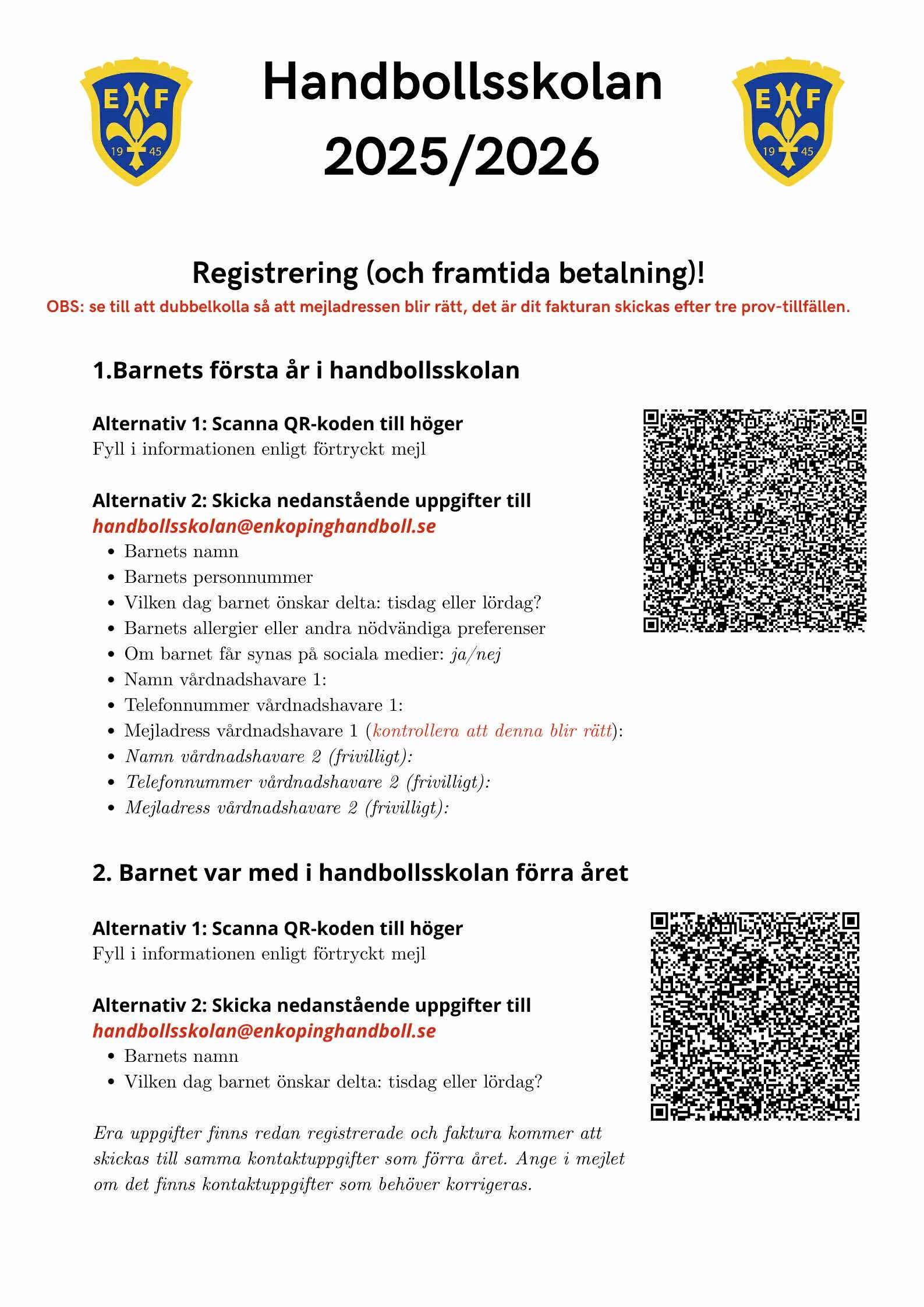 Följ oss för uppdateringar| Handbollsskolan 2025/2026 2 | |