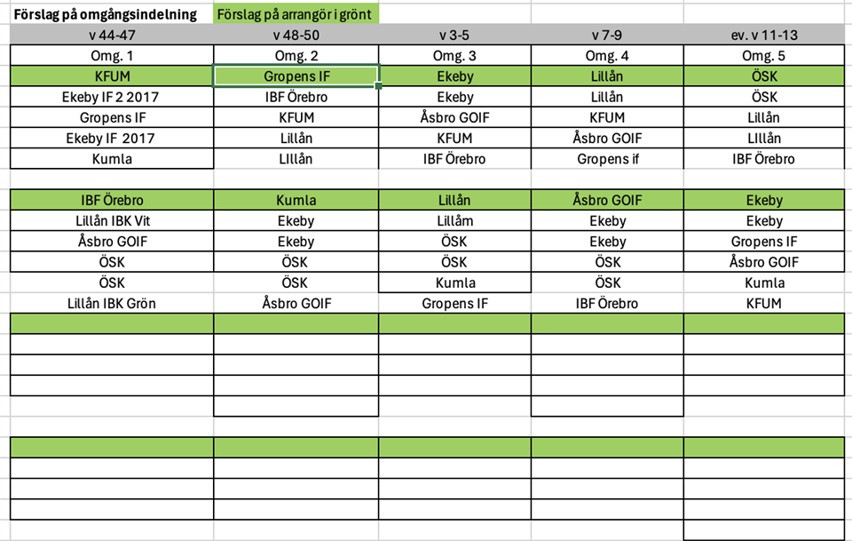 Hej! Vi har roliga nyheter. Vi spelar poolspel denna säsong också, inte seriespel som vi tidigare har gått ut med! Förbundet har backat från tidigare idé och jag har blivit lovad att jag får spelschemat för säsongen senast nästa vecka! Datum för poolspel läggs ut direkt när jag har schemat. Mvh Tim