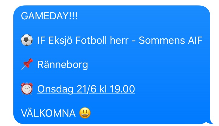Att spela fotbollsmatcher är både spännande och roligt, och att som ledare stå vid sidan av och se bra prestationer är fantastiskt roligt. Våra grabbar har gjort en fantastiskt bra insats i alla matcher även när vi har haft någon skadad eller borta. Vi har spelare som kan spela på mer än en position och det gör oss starka. Det är alltid någon som kliver fram när någon saknas. Det ska bli spännande att se vem som kliver fram och spelar extra bra i första returmötet. Grabbarna kommer väl förberedda och är riktigt taggade, vi kommer att ge allt för att ta hem 3 poäng. Vi hälsar Sommen välkomna till vår Hemma Borg och hoppas på en spännande och välspelad match. Peter Sixtensson Assisterande tränare Eksjö Fotboll Herr 21 jun 2017 0kommentarer