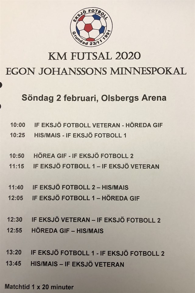 Spelprogram KM FUTSAL HERR - Egon Johanssons minnespokal - söndag i Olsbergs Arena Missa inte detta! Herr 1 feb 2020 0kommentarer