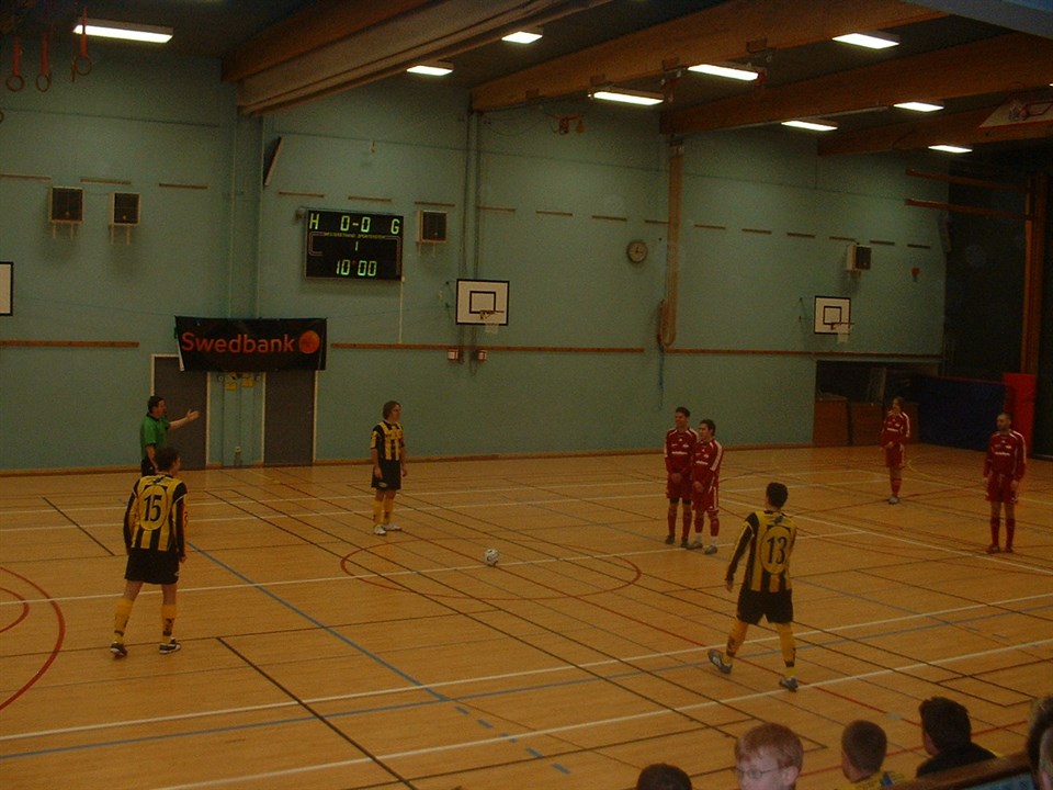 Äntligen har återigen ett EIS-lag gått vidare till söndagens slutspel i Emmaboda sporthall. Det är fyra eller fem år sen arrangörsklubben spelade ett slutspel i Swedbank Cup herrseniorturnering. Övriga två lag från 5-lagsgruppen (nybildade Ormeshaga BK från Hovmantorp lämnade återbud sent) som gick vidare från fredagen var Lessebo GoIF och Gullabo/Gullaboås. Favorittippade Vissefjärda GIF, som spelade final i Nybro Open förra helgen, blev utslagna tillsammans med Johansfors IF. Resultaten i Grupp 1 på fredagskvällen: 18:00 Emmaboda IS 1 - Johansfors IF ... 3-0 18:20 Vissefjärda GIF - Lessebo GoIF ... 0-4 18:40 Gullabo/Gullaboås - Emmaboda IS 1 ... 0-1 19:00 Vissefjärda GIF - Johansfors IF ... 2-1 19:20 Lessebo GoIF - Gullabo/Gullaboås ... 2-0 19:40 Emmaboda IS 1 - Vissefjärda GIF ... 3-1 20:00 Johansfors IF - Lessebo GoIF ... 0-4 20:20 Gullabo/Gullaboås - Vissefjärda GIF ... 3-2 20:40 Lessebo GoIF - Emmaboda IS 1 ... 2-1 21:00 Johansfors IF - Gullabo/Gullaboås ... 1-3 Tabell: 1) Lessebo GoIF ..... 12p (+11) 2) Emmaboda IS 1 ..... 9p (+5) 3) Gullabo/Gullaboås ..... 6p (0) - - - - - - - - - - - - - - - - 4) Vissefjärda GIF ..... 3p (-6) 5) Johansfors IF ..... 0p (-10) I morgon (Lördag 14 januari 2017) spelar GRUPP 2 # Lindås BK/Långasjö GoIF # Flygsfors/Gadderås IF # IFK Påryd # BiH IF Emmaboda # Kosta IF # Emmaboda IS 2 Omgång 1 10:00 Bosnien/Hercegovina IF - Lindås-Långasjö FF 10:20 Emmaboda IS 2 - IFK Påryd 10:40 Kosta IF - Flygsfors/Gadderås Omgång 2 11:00 Bosnien/Hercegovina IF - Emmaboda IS 2 11:20 Lindås-Långasjö FF - Kosta IF 11:40 IFK Påryd - Flygsfors/Gadderås Omgång 3 12:00 Emmaboda IS 2 - Kosta IF 12:20 IFK Påryd - Bosnien/Hercegovina IF 12:40 Flygsfors/Gadderås - Lindås-Långasjö FF Omgång 4 13:00 Kosta IF - Bosnien/Hercegovina IF 13:20 Lindås-Långasjö FF - IFK Påryd 13:40 Flygsfors/Gadderås - Emmaboda IS 2 Omgång 5 14:00 IFK Påryd - Kosta IF 14:20 Bosnien/Hercegovina IF - Flygsfors/Gadderås 14:40 Emmaboda IS 2 - Lindås-Långasjö FF SLUTSPEL (Söndag 15 januari 2017) 10:00 Grupp A: Tvåan grupp 2 - Gullabo/Gullaboås 10:20 Grupp B: Emmaboda IS 1 - Trean grupp 2 10:40 Grupp A: Lessebo GoIF - Tvåan grupp 2 11:00 Grupp B: Segrare grupp 2 - Emmaboda IS 1 11:20 Grupp A: Gullabo/Gullaboås - Lessebo GoIF 11:40 Grupp B: Trean grupp 2 - Segrare grupp 2 12:20 Semifinal 1: Segraren grupp A - Tvåan grupp B 12:45 Semifinal 2: Segraren grupp B - Tvåan grupp A 13:15 Match 3:e pris: Förlorare semi 1 - Förlorare semi 2 13:45 Final: Segrare semi 1 - Segrare semi 2 Välkomna till Emmaboda sporthall!