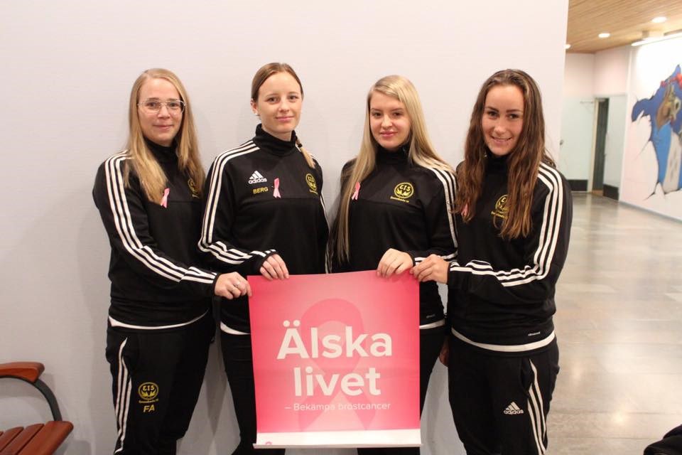 Nu har vi fått resultatet av vinsten från våran cup "Vi mot cancer", nya damcupen som spelades i Emmaboda sporthall, söndagen den 4 december 2016. Slutsumman som vi kommer att skänka till Bröstcancerfonden är: 25 925 kr!!! Och vi är så nöjda!! Det är så mycket mer än vad vi hade vågat hoppas på när vi först började planera för cupen! Så nu vill vi bara säga ett stort TACK! Tack till alla sponsorer, tack alla lag som ville vara med och spela, tack all publik som kom och kollade och tack alla som skänkte pengar eller på annat sätt hjälpte till med vår cup! Vi mot cancer, tillsammans! 💕💕 med, fr v på bilden, Frida Andersson, Sandra Berg, Alma Sternegård och Moa Berglund. Härligt jobbat EIS-tjejer!