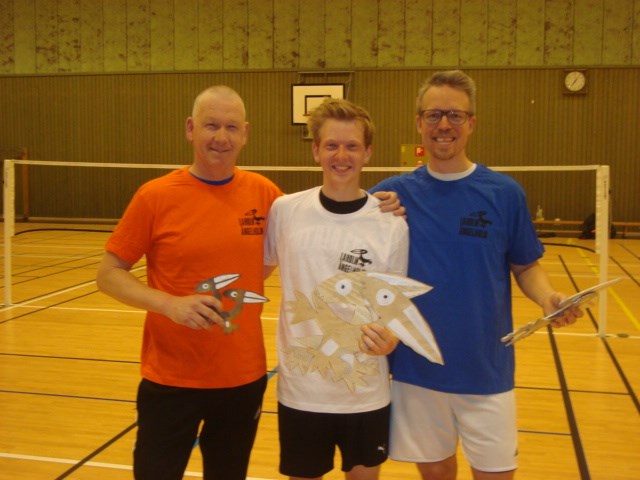 Grattis Ysbyflickorna till seriesegern! (Simon Henriksen,Hampus Axelsson) vann dubbelmatchen, ställningen var 1-1 i matchen inför dubbel som man vann med 2-0 i set. 2:a blev BA Design AB (Mikael Knutsson, Bengt Arvidsson). 3:a Hasby(Peter Axelsson,Niklas Johansson). Design o Ysbyflickorna förlorade i näst sista omgången. Design föll i dubbelmatchen med 2-1 , 21-17 i avgjörande set. Seriefinal den 22 mars KL.18.00 8 raka segrar. BA Design spelarna Bengt Arvidsson/Mikael Knutsson imponerar! Bengt har ett knep som han inte avslöjar! Vad kan detta vara? Två omgångar återstår. Efter omgång 7 så delas serien i 2 grupper, slutspel lag 1-4 och 5-8 möts en gång till (3 matcher) får alla lagen totalt 10 seriematcher. Alla lagen tar med sig sina poäng från grundserien. Tabellen står kvar som den är efter omgång 7. 8 mars börjar slutspelet, lottning av matcherna den 1 mars. Den 1/3 var hela B-hallen full med badmintonspelare + drop-in spelare 16 badmintonspelare. A-hallen spelades innebandy drop-in spel med 15 personer. Speldatum i slutspelet i badminton är:8,15,22 mars. Prisutdelningen är 22 mars kl:ca 19.15 i b-hallen. Priser till 1,2,3 Hamnar 1:an o 2:an på samma pöäng efter omgång 10. Räknas inbördes möten först,Sedan matchkvot inbördes möten mellan 1-2.Fortfarande lika matchkvoten alla 10 matcherna. Korpen Laholm/Ängelholm