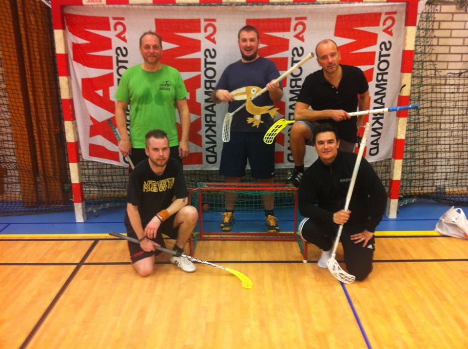 Vinnarlaget stående från väster:Glenn Karlsson,Dejan"Zlatan"Lingejic,Harry Potocki. Främre från vänster:Mikael Karlsson,"Målburen",Bojan Lingejic, Saknas:Niklas "Nilo"Nilsson,Jocke Sörensen Omg.12 Unos-Putin 6-10,BP-Murphys 13-8 Första vinsten för Putins Pågar vände sista minuten 17-19 till 20-19 efter 10-10 i halvlek. BP vann i sin hemmahall mot Calles med förkrossande 29-6(18-2) och säkrade seriesegern. Putins Lisa rekordsnabb målskytt: 19 mars mellan Putin-Murphys Matchstart tekning Lisa tekar vid mittlinjen bollen går direkt i mål tid: 1 sekund. 1-0,Grattis Lisa Edvardsson!. 2/3 av serien är spelad BP leder serien men Murphys skuggar. Kan bli en ren seriefinal den 12 april i Laholm kl.19.00! 19 mars 2 matcher i Ängelholm:Putin-Murphys 15-24,Calles-Unos 23-18. 18 mars:Unos-BP 6-24 Heta känslor där utvisningarna fällde avgjörandet i seriefinalen ,hade BP vunnit matchen hade seriesegern nästan varit i hamn.Hamnar 1:an o 2:an på samma poäng när serien är slut .Räknas inbördes möten mellan 1-2:an först,fortfarande lika målkvoten(12 matcher)Putin-Calles 13-31 Calles-BP 10-28 .Unos-Putin 29-15 BP samlas Lagaholmshallen kl.19.30 5 mars(torsdag) för resa till Ängelholm för match. 1/3 av serien spelad. BP leder serien utan poäng tapp. 19 Feb. Putin-BP 8-26(2-13),Murphys-Calles 23-15(14-9) Nyhemshallen Unos-Calles 14-11 (10-3)Uno ledde med 8-0 men tappade sin ledning till 12-11 i slutminuten där Unos avgjorde. Calles RE-Putins Pågar 25-7(10-5). BP-Murphys 8-7(4-5)Toppmatch med dramatik Murphys missade straffslag 14.59 i andra perioden,8-7 när Murphys får straff som man skjuter utanför o tappar en poäng. V.5:BP- PP 32-6 o PP-Unos 11-20 Unos Bygg-Murphys 15-17 (8-11) Veckansmatcher:28 jan.BP-Putin o 29 jan.Putin-Unos Bygg 20.15 båda matcherna. Unos samlas 29 jan. Lagaholmshallen 19.30 för resa till Ängelholm. BP vann bortamatchen i Ängelholm med 18-7 (8-4),Taggat BP körde över Calles RE-cyckling.25 jan. Unos Bygg-Murphys lag kl.18.30 Premiären bjöd på 26 mål.När det stod 12-12 i sista minuten då slog Jocke "Dansken" Sörensen till med två snabba mål i en händelserik match.JOCKE GJORDE OTROLIGA 11 MÅL I MATCHEN. Matchinfo: UNOS BYGG-BP 12-14 ( 5-7 ) Mvh Korpen Laholm/Ängelholm