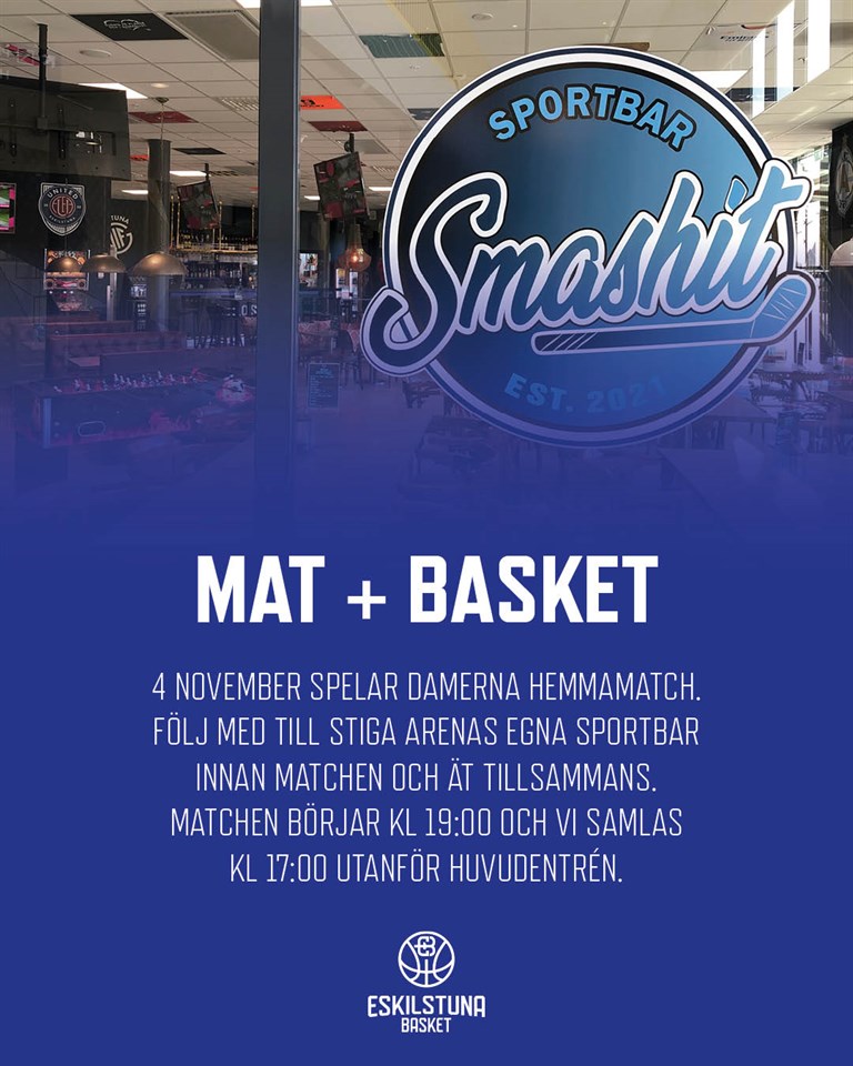 Starta helgen (4/11) på absolut bästa sätt 🍔+🏀 Vi äter tillsammans och laddar upp inför att heja fram damlaget till ytterligare en seger. Coach Rolle kommer och snackar gameplan för matchen! Vi samlas utanför huvudentrén till Stiga Arena kl 17:00 och går sen tillsammans till damernas match som börjar kl 19:00. Eskilstuna Basket 26 okt 2022 0kommentarer