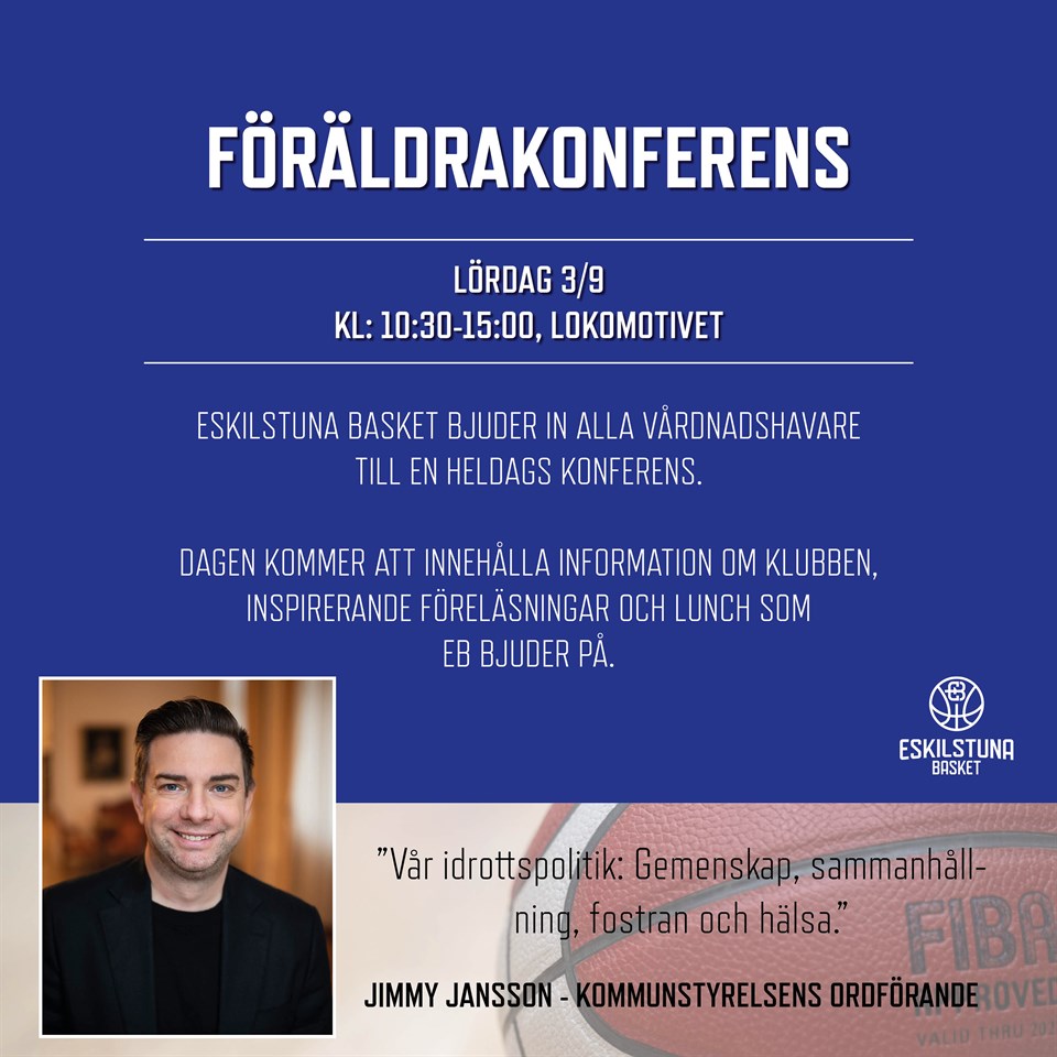 Nu närmar det sig till föräldrakonferensen, boka in det! En av gästerna som kommer att dyka upp under dagen är Jimmy Jansson 😀 Anmäl er till konferensen genom länken här nedan. http://simplesignup.se/event/195374-foeraeldrarkonferens Eskilstuna Basket 17 aug 2022 0kommentarer