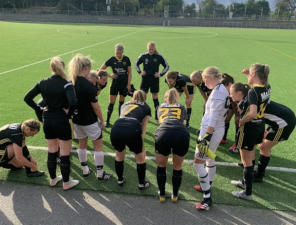 Ett ordentligt snack i halvlek ger utdelning och vi hittar vårt spel mycket bättre och får tryck på Marieberg. I minut 49 får vi en straff då Elin blivit fälld i straffområdet, en straff som hon själv förvaltar. Målvakten är på den men det hjälper inte utan den sitter i mål, 1-0 till oss! Vi fortsätter att ånga på, vinner många bollar och efter ytterligare 3 minuter, i minut 52 är det lite tumult i straffområdet och vi träffar ramen som det blir retur på som Elin sedan sätter i nät, 2-0 till oss! Under en period känns det som en ganska stabil ledning, vi fortsätter vårt spel framåt och gör det fint, hade t.o.m. kunnat sätta några till chanser, bla har Annie ett avslut i ribban efter hörna. Istället får Marieberg upp farten och det blir nervöst i slutet när de gör 1-2 i minut 78 efter en frispark, och några minuter efter det har de en till frispark som går undersida ribba. Här slår hjärtat ganska hårt vill jag lova, men vi gör en riktig krigarinsats och när dommaren blåser av är det en fantastiska känsla och våra 3 första poäng är inkasserade för säsongen!