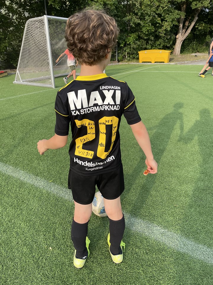 Tack för bra barnuppslutning och starka föräldrainsatser under vårens sista träning. Ovan ser ni bild på Theo i sin EIK-tröja signerad av laget. Lycka till i Barcelona Theo! Albert tar oxå en paus från EIK för flytt till Täby men vi räknar med att ni båda kommer tillbaka. Spela gärna fotboll på lovet och om det inte finns så många att spela med uppmuntrar vi barnen att både kicka (för bollkontroll) och att träna på långa skott (ca 15 meter). Tack för denna termin och stort tack för bubbel till tränarna - bättre på midsommar än en vattenpaus på match! / Ola, Anna & Jim Thanks to all boys and parents joining for the last training of the spring season. Above you see a picture of Theo in his EIK shirt signed by the team. Theo, good luck in Barcelona! Albin is also taking a break from EIK as he is moving to Täby but we think both of you will come back again. Please play a lot of football during the summer break. The kids are also encouraged to exercise football juggling (for better control) and score from distance (around 15 meters). Thanks for this semester. We would also like to thank you for the sparkling wine - it will be even more appreciated in midsummer than a drinks break at a football match! / Ola, Anna & Jim P112 (P11 och P12) 22 jun 2021 0kommentarer