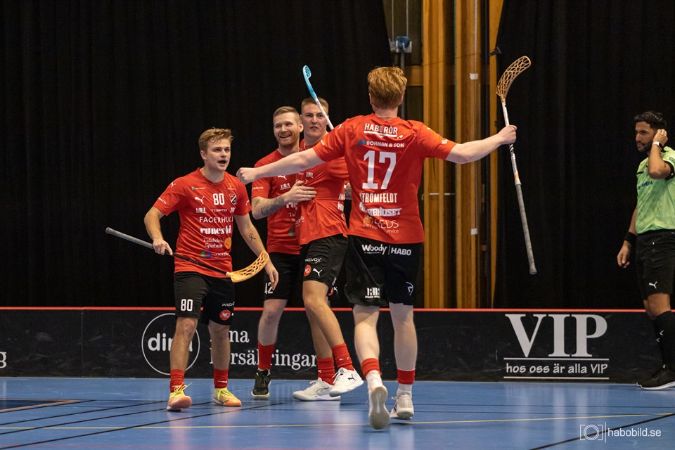 2022 rundades av på allra bästa sätt med tre poäng in på kontot hemma i Sporthallen. Men det satt hårt åt som så många andra gånger den här hösten men en urstark tredje period säkrade en fin julklapp åt FHIB-supportar. Resultatet 7-3 (0-1, 1-1, 6-1) Statistik Tobias Zälle 1+1 Robin Raske 1+1 Simon Sandqvist 1+0 Tim Andersson-Carlsson 1+0 Arvid Wibring-Lindqvist 1+0 Oscar Liljegrahn 1+0 Joel Dagman 1+0 Fabian Sammemyr 0+1 Filip Åkerblom 0+1 Johan Ringqvist 0+1 William Strömfeldt 0+1 Theo Eriksson 0+1 Matchen Dom första två perioderna var lika jämna som resultatet visade. Gästerna hade ett litet grepp med 1-2 på resultattavlan och med ett djupt sittande försvar så packade man ihop sig rejält i egen zon och väntade på kontringslägen där man skapade dom flesta av sina lägen. Det var hemmalagets tredjeformation som spräckte målnollan och som drog igång upphämtningen både mål- och spelmässigt. Simon Sandqvist reducerade till 1-2 och det blev startskottet för vändningen. Innan klang och jublet drog igång så vred gästerna ned temperaturen ett par hack ytterligare när man just via en kontring prickade in 1-3 och frågan om tre poäng var ställd på allvar till hemmalaget. Svaret lät inte vänta på sig allt för länge. Man fick till sist en efterlängtad urladdning och kunde på matchens 12 sista minuter göra hela 6 mål och kunde i och med detta kvittera ut 3 poäng, skänka julefrid till alla supportrar och tända på nyårsraketerna. Nyckelögonblick I förra veckans bortamatch så var det Warberg som gjorde ett ryck som blev matchavgörande. Nu var det hemmapubliken i Habo Sporthall som fick se sitt hemmalag göra något liknande. Först hämtade man in underläget innan man på 38 glödheta sekunder stängde matchen. Oscar Liljegrahn prickade in 4-3 efter ett mönsteranfall som följdes upp av matchens mål när Arvid Wibring-Lindqvist skickade bollen i mål den så kallade köksvägen i bytet efter. Noterbart Att FHIB är ett lag där alla är med och bidrar är en av dom viktigaste byggstenarna i lagbygget. Den här gången var det bara att ta en titt i matchprotokollet för att få det bekräftat. Där hittade hela tolv spelare med poäng varav en målvakt med assist. Kommentaren - Skönt att få runda av hösten med tre poäng, konstaterade Francisco Haraldsson efter matchen. Francisco som kompletterade ledarstaben när John Widlert fick kasta in handduken med sjukdom fortsatte. - Det satt hårt åt men över 60 minuter så är vi det bättre laget. Vi börjar piggt men tappar lite momentum när dom tar ledningen. Under andra halvan känns det som att det bara är en tidsfråga innan det skulle vänd. Nästa match Spelas lördagen den 7:e januari mot Höllviken IBF på bortaplan. Foto: Mats Olofsson (habobild.se)