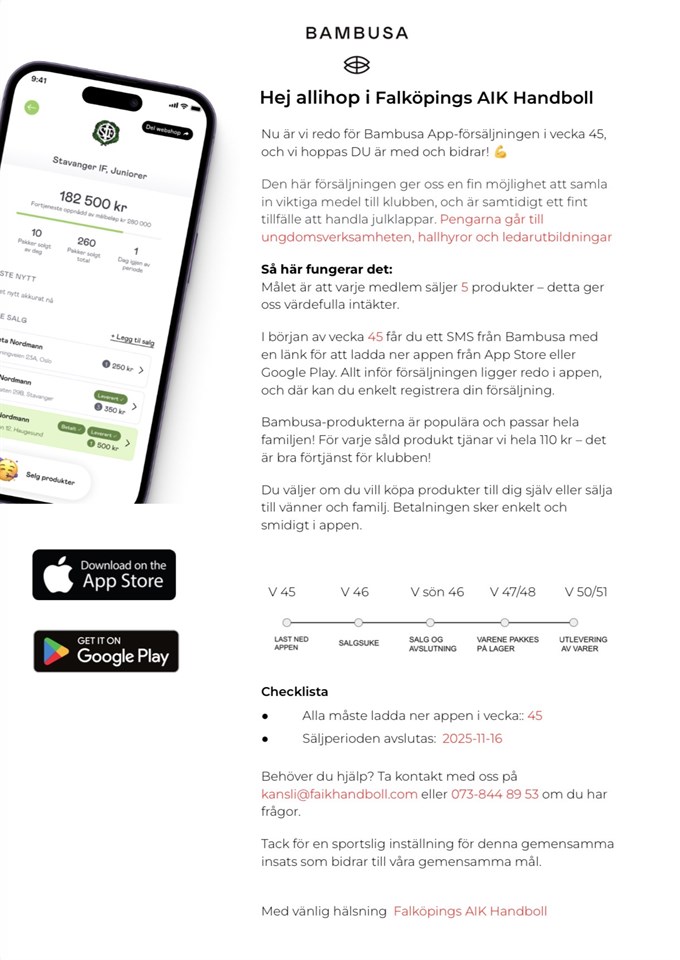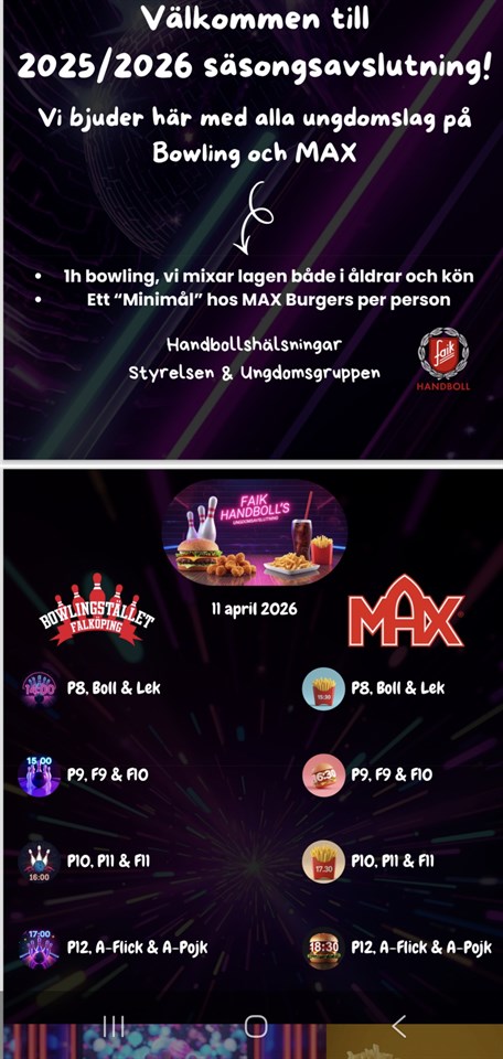 Klicka på bekräftelselänken i det mejl vi skickat dig för att börja ta emot uppdateringar från Falköpings AIK Handboll P12 (Födda 2013).
