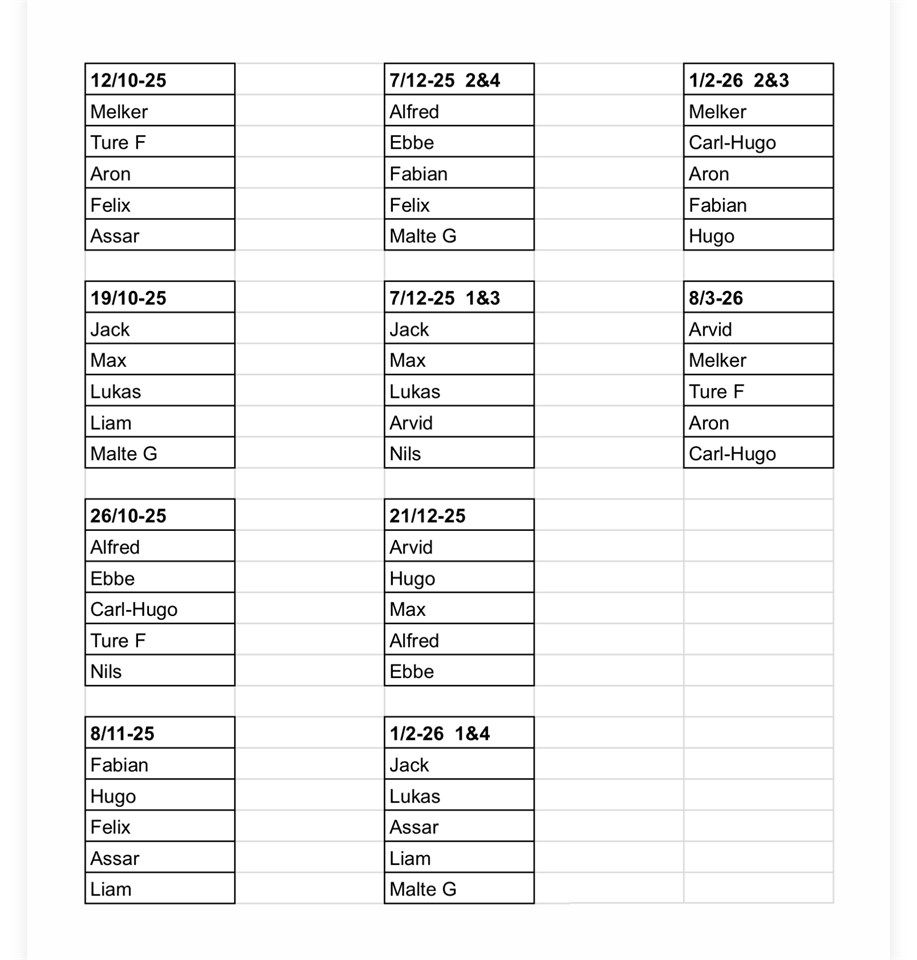 Här kommer schemat för kiosk och sekretariat, säsongen 25/26.