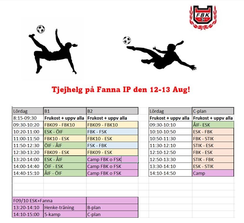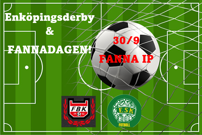 Häng med oss den 30/9! Denna dag är det Enköpingsderby mellan Fannas herrlag och ESK, och vi passar på att ha vår årliga Fannadag. Varmt välkomna att hänga med oss hela dagen. Mer info kommer om dagens aktiviteter, men redan här ser du matcherna som spelas då på våra planer på Fanna IP. 08:30-12.00 Sammandrag (F14) 10.00-11.00 Gåtfotboll 12:00-13.30 Match Fanna damjuniorer - Bälinge 13:00-14.00 "Derby" Enköpings SK UK (P-12) 15:00-17.00 Derby herrlaget - Enköpings SK De blir en massa andra roliga aktiviteter här denna dag också, för såväl stora som små. Vi återkommer närmare om det Vi ses! //Jeanette