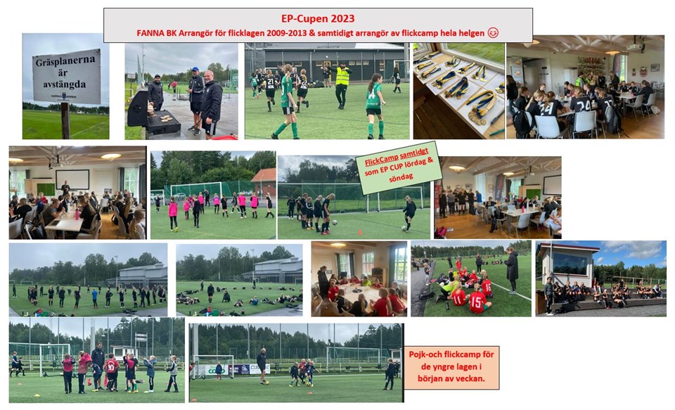 Vilken helg vi haft! Vilken vecka vi haft i Fanna BK och på Fanna IP. Det har väl inte undgått någon att vi i helgen varit arrangör av EP Cupen - flicklag på Fanna IP, och samtidigt arrangerat en flickcamp för samma åldrar. Jag ville knyta ihop dessa två aktiviteter för att främja och lyfta fram flickfotbollen, med det som grund så bjöd vi även in ESK och Fjärdhundra i att delta i en del av Campen. Viktigt att också stärka samarbetet mellan oss föreningar. Vi bjöd dessutom alla deltagare oavsett förening på en frukost och sen hade vi gemensam uppvärming som leddes av delar från damlaget. Bästa möjliga start ville vi ha här. Det vi inte hade räknat med som gjorde allt till en extra stor utmaning var att det ändrades bland deltagande lag in i det sista. Spelscheman mm fick göras om i sista minut, men framför allt, vi tappade en hel fotbollsplan att hålla till på. Vår blöta gräsplan kunde inte öppnas upp inför helgen. Att nu få in alla matcher och Camp på endast två planer istället för tre, krävde mycket vilja, teamwork och tålamod. Allt detta hade vi. Med de förutsättningar vi hade så vill jag mena att helgen på Fanna IP absolut får 5 plus av 5 möjliga +++++. Nyckeln är teamwork. Här har Damlaget med både tränare och spelare varit föredömliga och tagit ett stort ansvar i att hjälpa till på många olika sätt. Allt från måltider, grillning till olika pass och övningar i själva Campen och varit speaker. Tack Magdalena, Henrik, Magnus och hela ert fantastiska gäng! Lika grymma är de F08:or och 9:or som mer än gärna tog på sig ledarrollen vid några tillfällen när det behövdes. Inte nog med det, vår huvudtränare i herrlaget Ali fick hastigt hoppa in och döma i en av flickmatcherna, när domaren behövde en hastig paus. Detta gjorde han med bravur, och han tyckte det var riktigt roligt. Teamwork! Tack kioskgänget, och alla som bidragit och deltagit. Veckan inleddes också med en camp för pojk- och flicklag, som var väldigt lyckad, tack Johan och Kristoffer. Veckan avslutades också med Cup och Camp, och däremellan och mitt i, en massa regn som absolut påverkar oss, men det stoppar oss inte! Ny vecka och nya möjligheter väntar nu, och säkert nya utmaningar. Ha en fin vecka allihop. Tillsammans tar vi oss framåt! Varma hälsningar Jeanette