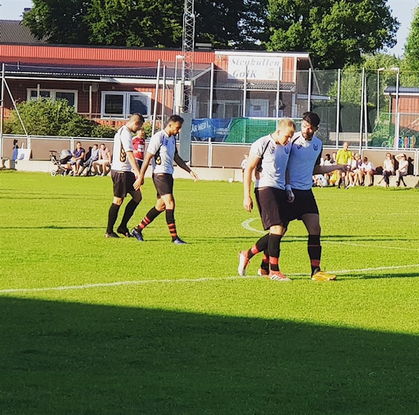 Anders utvisad ,men dagens dommare gör allt för att synas matchen igenom. Runt min 60 får Shwan ett friläge men lyckas inte träffa mål tyvärr..Det skulle dröja till min 77 innan vi kunde sätta bollen i mål igen. Alen slår en perfekt hörna som träffar Elvedin som placerar in bollen i mål ...2 - 1 !! Stenkullen går ner på en 3 backslinje ,lyfter upp folk men lyckas aldrig hota och matchen slutar 2-1! En bra match mot ett bra Stenkullen Goik och framförallt bra värdar! Tack för det...