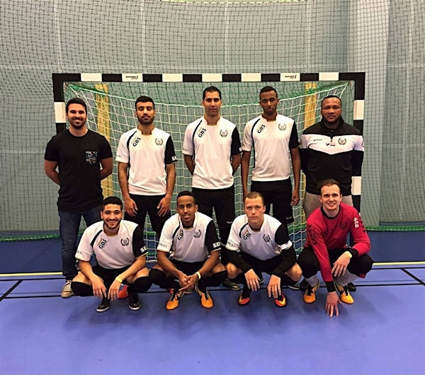 På bilden: Parker Ayewubo (Tränare), Calle Vallgren, Christoffer Larsson, Fernando Echenique Ferrari, Hadi Hamzeh, Hardi Kalkali, Jafet Menghestab, Muataman Al Debes och Nebeyu Elias.