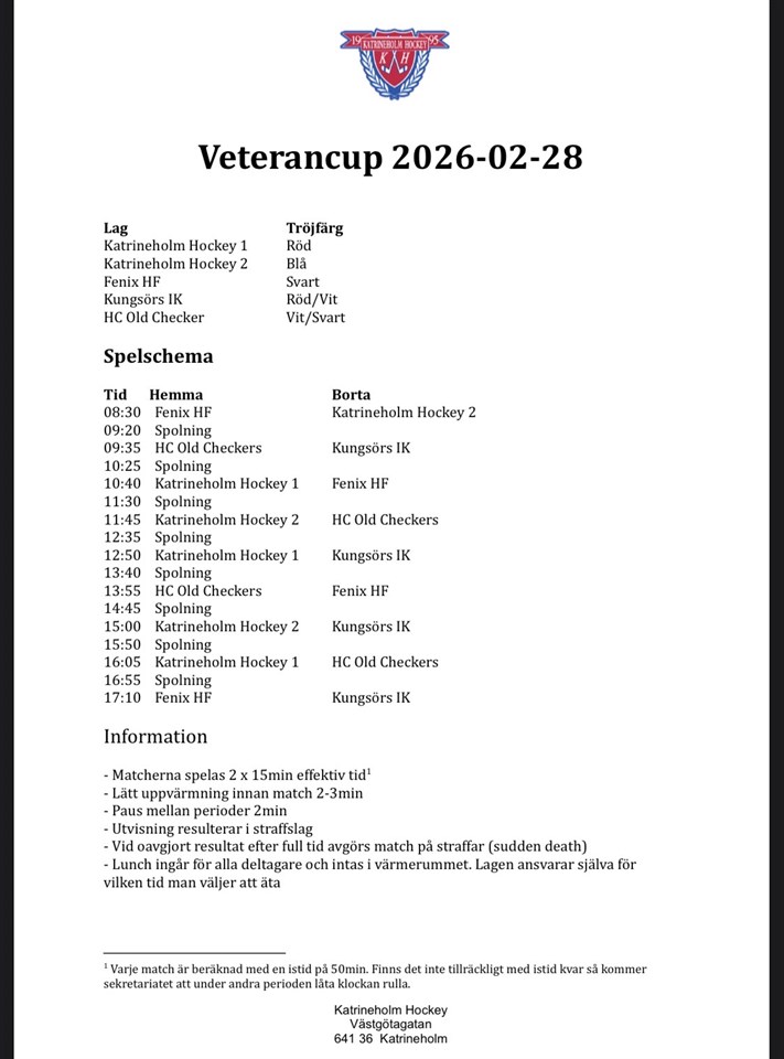 | Katrineholm (hemma) | 28 feb, 08:00 |