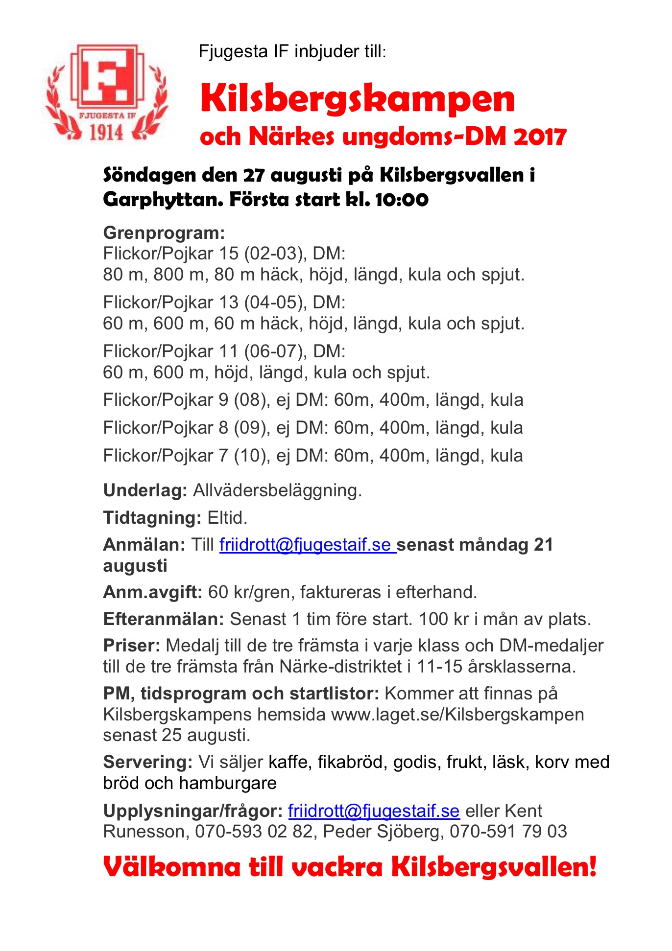 Fyll i din e-postadress för gratis uppdateringar om Fjugesta IF Friidrott, Yngre