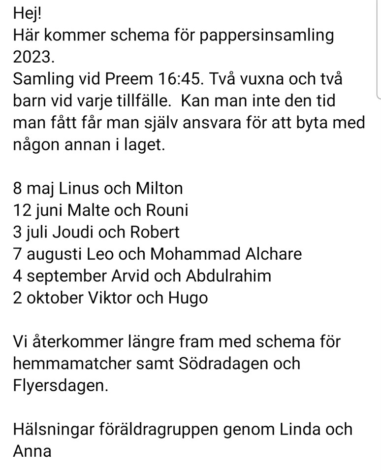Här kommer schemat för pappersinsamlingen! P-10 26 apr 2023 0kommentarer