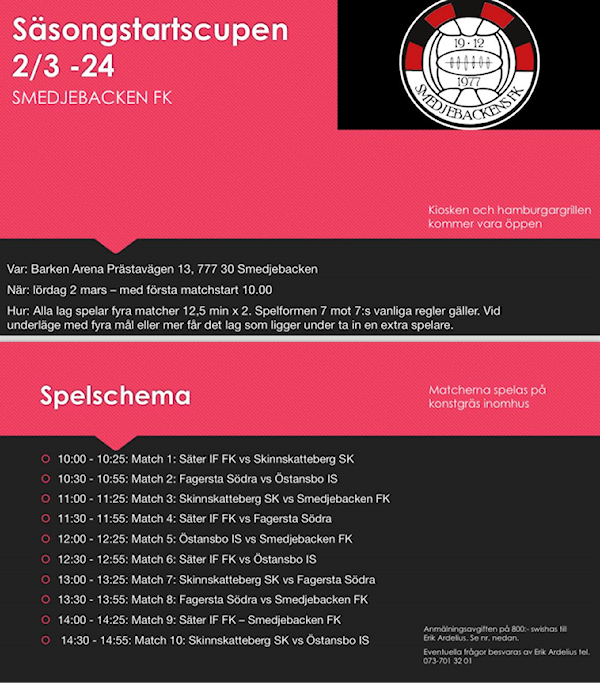 Intresseanmälan till Smedjebacken cuppen lördag 2 mars senast måndag 26 februari kl 18:00