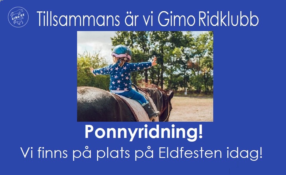 Idag är Gimo Ridklubb på Eldfesten i ÖsterbybruK! Vi är där från kl 12.00 och ett par timmar framåt med två av våra ponnier. Och du, vi har käpphästarna med också! Vi ses där!