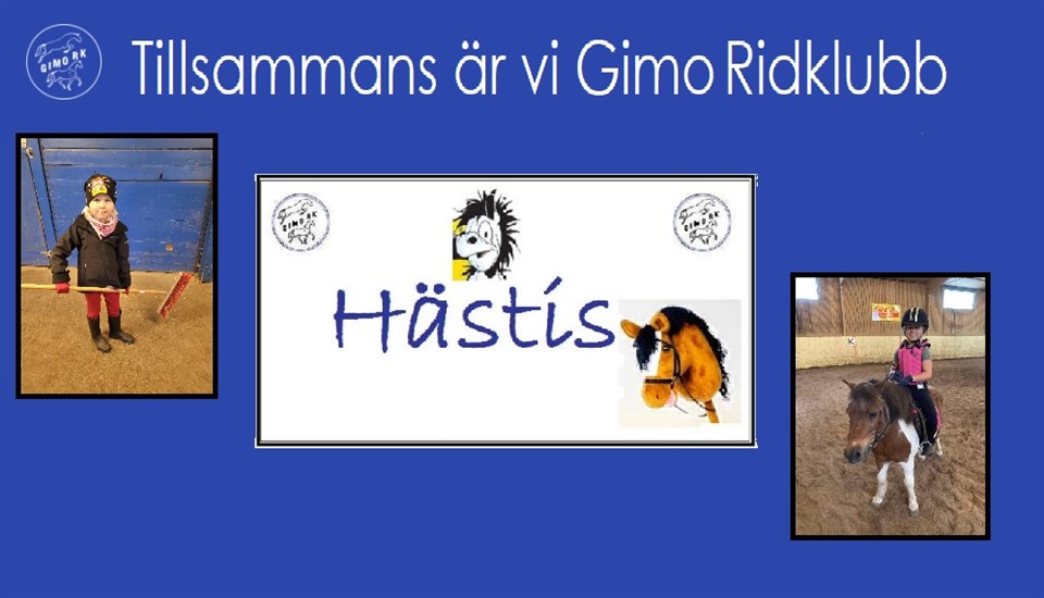 Hästis - för den lilla ryttaren Älskar ditt barn hästar? Vill du att ditt barn ska få umgås i stall och lära sig om hästar på ett lekfullt och tryggt sätt? Välkommen till Gimo Ridklubbs Hästis Varannan vecka ses vi med start lördagen v.4 (25/1) Ditt barn får trygga, kunskapsbaserade möten med hästar och stallmiljön hos oss. Allt på ett lekfullt sätt som är anpassat för den allra minsta ryttaren. Hästistillfällena är en form av förskola där barnen får vistas i stallet, ridhuset och uteritter. De får pyssla med hästar, käpphästar och mycket annat roligt. Detta sker på ett härligt sätt där barnet får lära sig massor om livet med hästar. Tillfällena är ca 40 min långa och anpassade för barnens fokusnivå och utvecklingstakt. Alla barn mellan 3-6 år är välkomna. Vi är anslutna till Ridsportförbundet och Naturligtvis har vi ansvarsförsäkring och alla medlemmar försäkrade, Läs mer om hästis här Anmäl ditt barn till Lördagar jämna veckor. kl 10.00 10 tillfällen start v.4 1600 kr (avgiften kan delas) Går ditt barn på Hästis nu i höst så behöver du anmäla om dig inför vårterminen. Kostnaden betalas på plats vid första tillfället Medlemsavgift tillkommer. Anmäl ditt barn till: gimoridskolan.instruktorer@gmail.com Där svarar vi också gärna på frågor. VÄLKOMNA!😊 Är ditt barn äldre och vil börja rida? Kolla här! Klicka här om du eller ditt barn har ridit förr