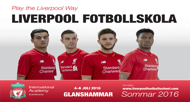 Välkommen till Liverpool Fotbollskola i Glanshammar 4-6 juli 2016. Det är en fotbollsskola med stort upptagningsområde för killar och tjejer mellan 6-14 år. Liverpool Fotball Club är ansvarig för det idrottsliga innehållet och genomförandet av skolan tillsammans med Glanshammars IF. Läs mer om Liverpool Fotbollsskola och anmälan Glanshammars IF 2 mar 2016 0kommentarer