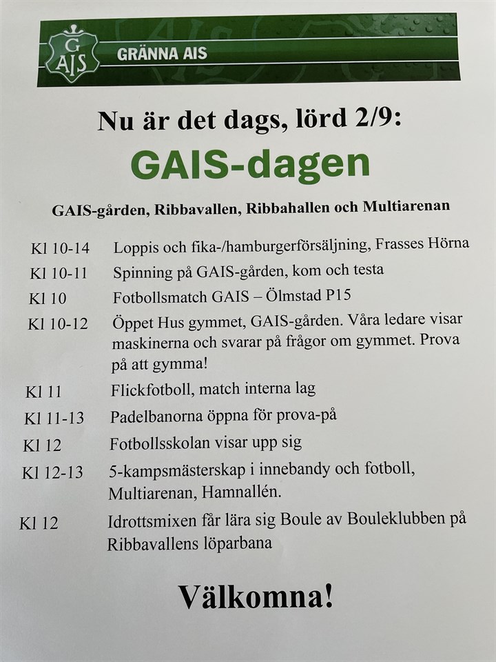 Välkomna till GAIS-dagen 2/9-23!